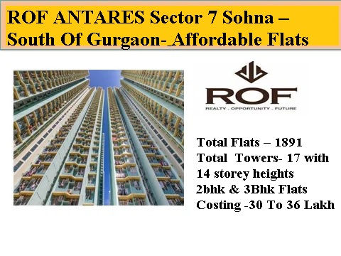 ROF ANTARES Sector 7 Sohna – South Of Gurgaon. ROF Developers Is Coming Up With New Upcoming Project Under Haryana Govt Affordable Housing Scheme. It Offers 2 BHK And 3 BHk Flats Near Delhi Mumbai Corridor.